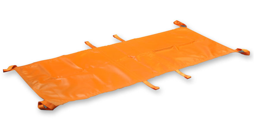 Dotato di borsa e otto maniglie per rendere più sicuro il trasporto del paziente. A norma EN 1865