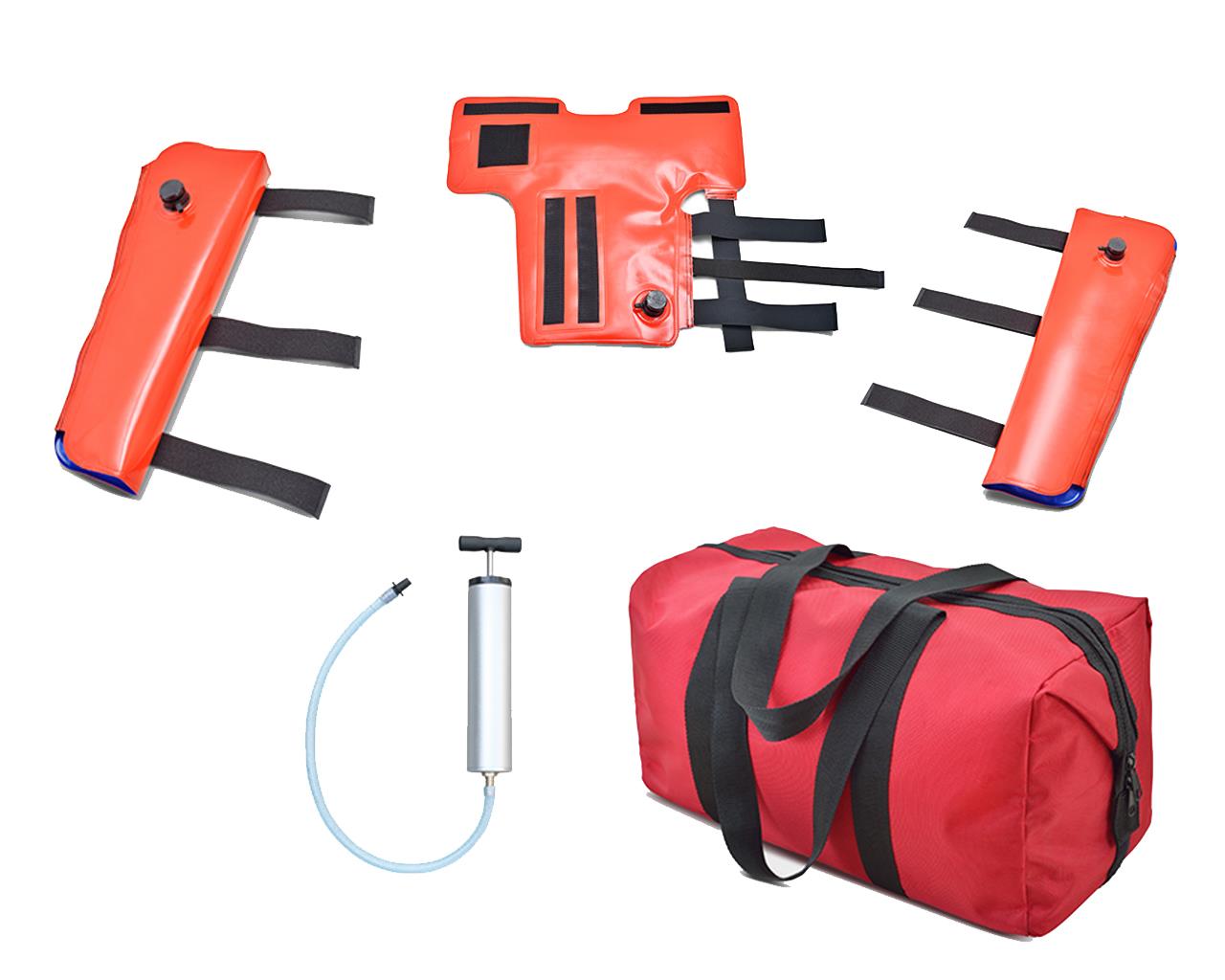 Set di steccobende che include stecche a depressione per braccio, gomito e gamba, borsa di nylon e pompa da 0,25 l .