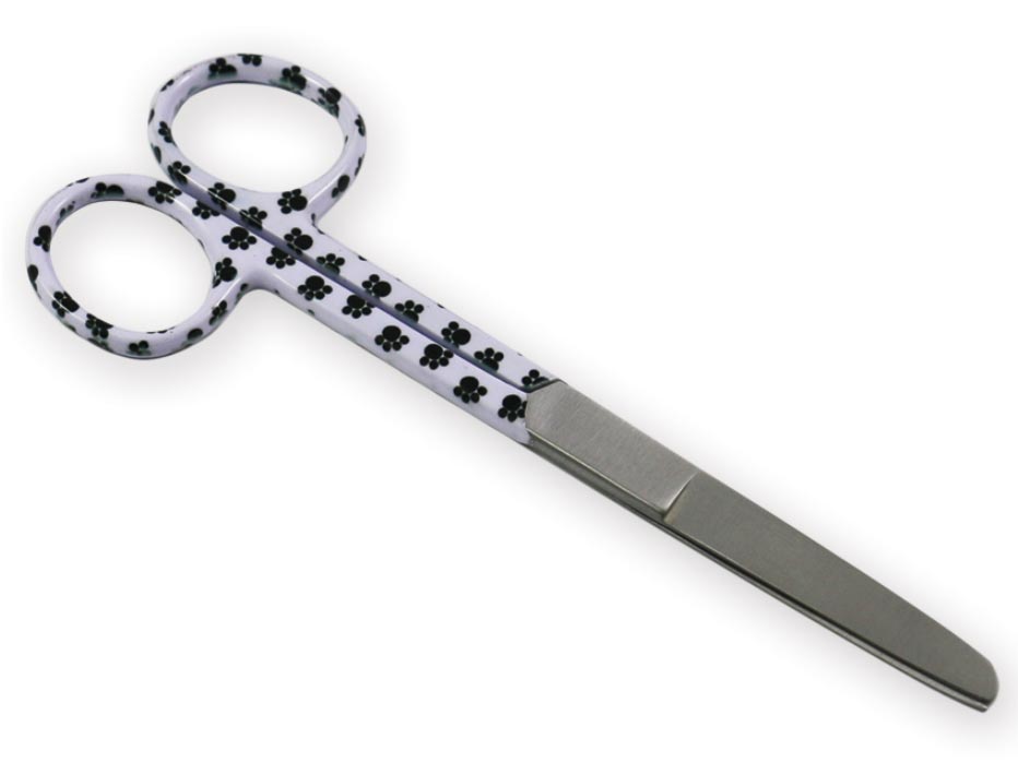 Forbici rette in acciaio punte alterne fantasia a orme.