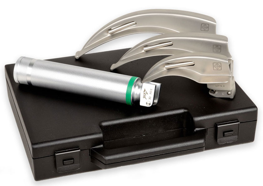 Laringoscopio linea Gima Green a fibra ottica staccabile e con luce LED.
