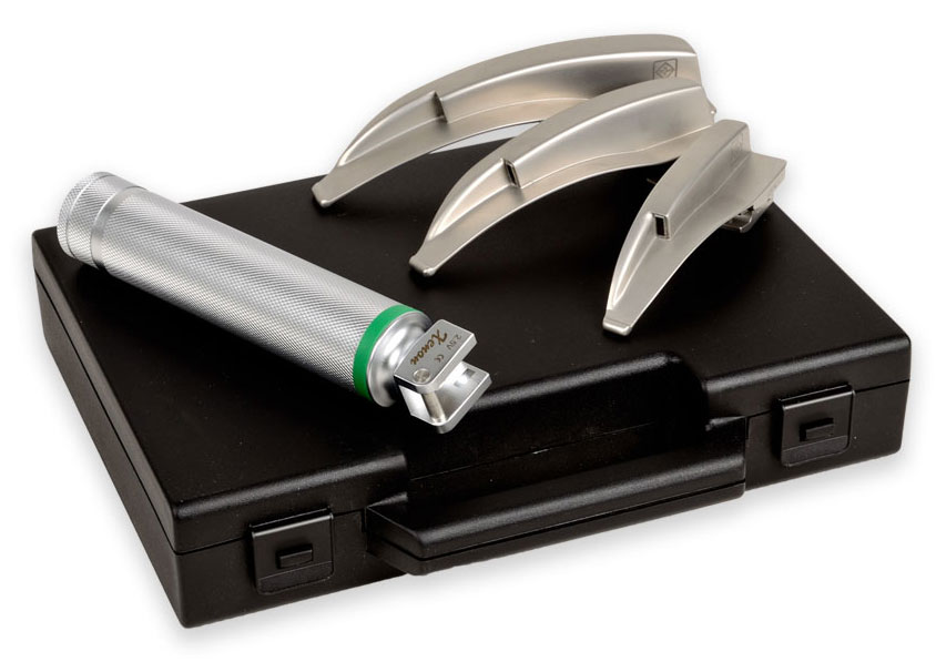 Laringoscopio linea Gima Green Maxlite a fibra ottica integrata e con luce alogena Xenon.