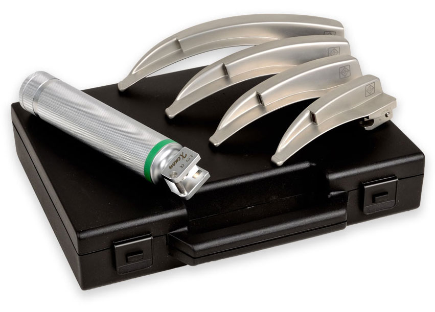 Laringoscopio linea Gima Green Maxlite a fibra ottica integrata e con luce alogena Xenon.