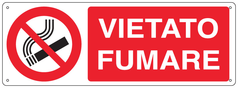 Cartello di "vietato fumare" in alluminio con bioadesivo in acrilico retinato capace di garantire una perfetta durata e tenuta su qualsiasi superficie, con particolare attenzione a muro, cemento, mattone, legno e metallo.