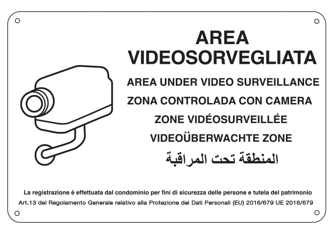 Cartello "Area Videosorvegliata" in alluminio con quattro fori agli angoli
