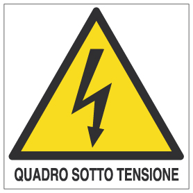 Etichette di pericolo in PVC autoadesive con dicitura "quadro sotto tensione"