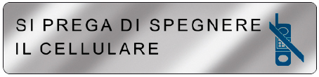 Targhetta Easy Fix riportante la dicitura "Si Prega di Spegnere il Cellulare", in alluminio specchio con biadesivo in acrilico retinato capace di garantire una perfetta durata e tenuta su qualsiasi superficie, con particolare attenzione a muro, cemento, mattone, legno e metallo.
