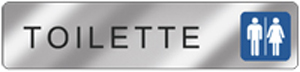 Targhetta Easy Fix riportante la dicitura "Toilette", in alluminio specchio con biadesivo in acrilico retinato capace di garantire una perfetta durata e tenuta su qualsiasi superficie, con particolare attenzione a muro, cemento, mattone, legno e metallo.
