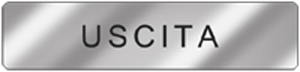 Targhetta Easy Fix riportante la dicitura "Uscita", in alluminio specchio con biadesivo in acrilico retinato capace di garantire una perfetta durata e tenuta su qualsiasi superficie, con particolare attenzione a muro, cemento, mattone, legno e metallo.