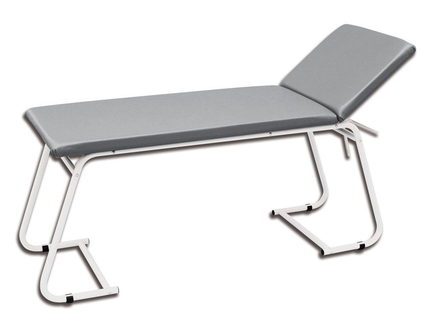 Lettino in acciaio ideale per studio medico o piccoli ambulatori con materassino rivestito in finta pelle di colore grigio lavabile. Composto di due parti:
