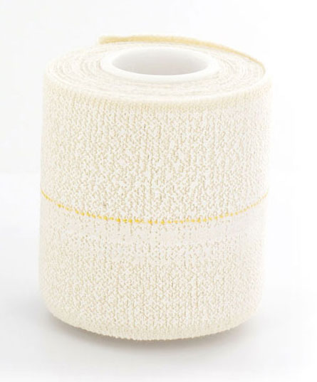 Bendaggio elastico adesivo di contenimento. Ogni benda è protetta da singolo cellophane.