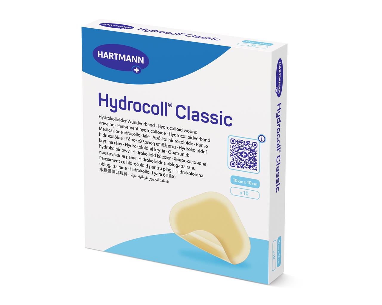 Hydrocoll® Classic è composto da tre materiali: idrocolloide, film di poliuretano e release liner. Lo strato idrocolloide è composto da carbossimetilcellulosa di sodio (CMC) e adesivo hot melt. Assorbe i liquidi e permette alla medicazione di aderire alla ferita e alla cute circostante. Il film di poliuretano è permeabile al vapore acqueo, resistente all’acqua e impermeabile ai liquidi e ai batteri.Confezione da 10 pezzi.
