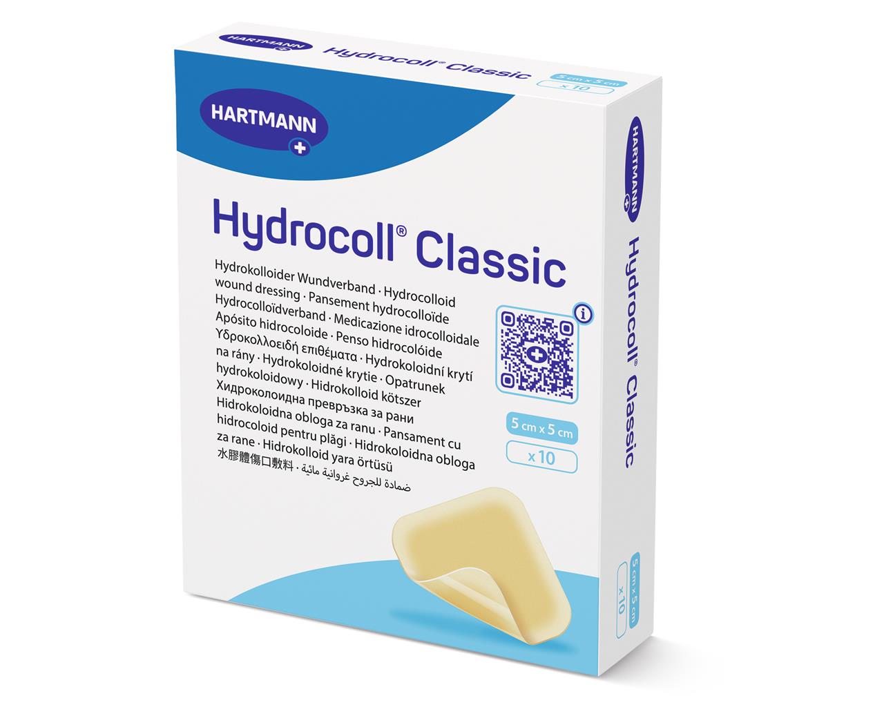 Hydrocoll® Classic è composto da tre materiali: idrocolloide, film di poliuretano e release liner. Lo strato idrocolloide è composto da carbossimetilcellulosa di sodio (CMC) e adesivo hot melt. Assorbe i liquidi e permette alla medicazione di aderire alla ferita e alla cute circostante. Il film di poliuretano è permeabile al vapore acqueo, resistente all’acqua e impermeabile ai liquidi e ai batteri.Confezione da 10 pezzi.