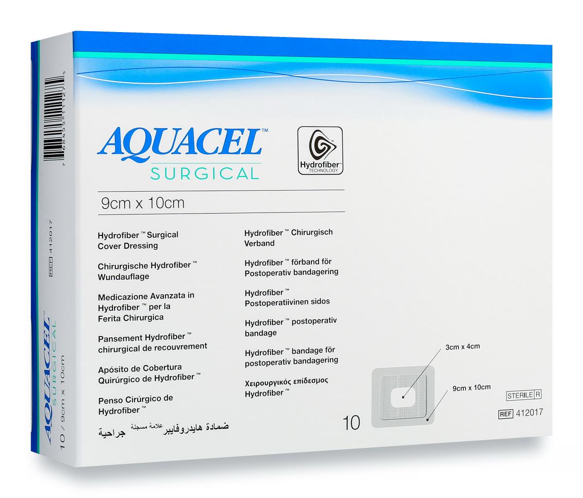 Aquacel® Surgical è una medicazione sterile composta da lamine di idrocolloide e film di poliuretano con tampone centrale assorbente (da porre a contatto con la linea di sutura) a base di fibre di carbossimetilcellulosa sodica (Tecnologia Hydrofiber®) contenente Elastane e Nylon.