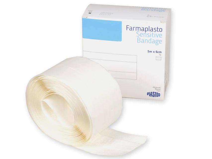 Striscia adesiva da tagliare, in tessuto non tessuto estensibile bianco 100% poliestere. Traspirante e conformabile.
