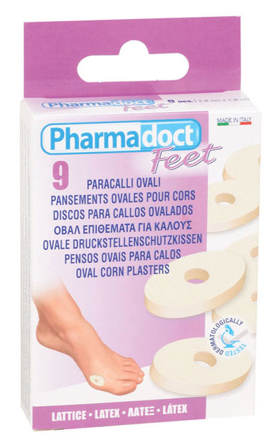 Protettivi paracalli ovali della linea Pharmadoct. Confezionati in blister.