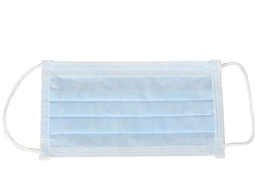 Maschere chirurgiche resistenti agli spruzzi di liquidi, costituite da uno strato di polietilene a rete e tre di tessuto non tessuto, laminati a “sandwich”.