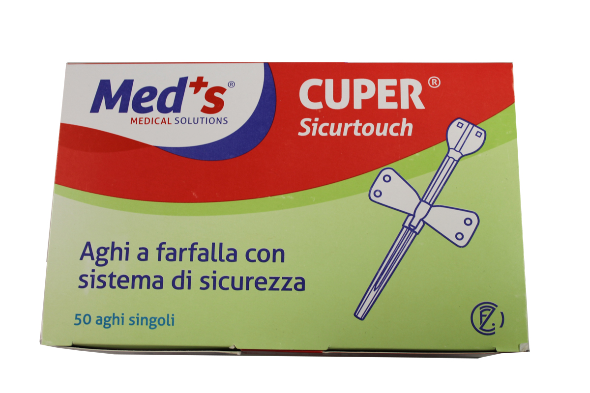 Aghi a farfalla sterili, monouso, apirogeni, atossici, fabbricati con materiali inerti, provvisti di sistema di sicurezza integrato, idoneo a prevenire il rischio di punture accidentali e a garantire l'incolumità dell'operatore.