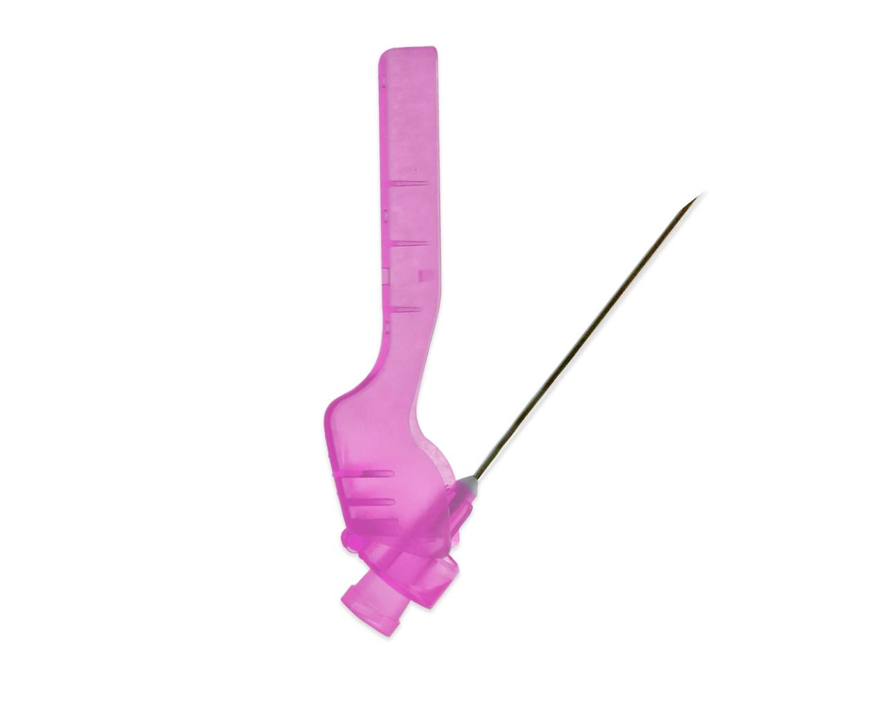 Tubo in acciaio INOX AISI 304 con triplice affilatura, lubrificato con olio di silicone inferiore a 0,25 mg, copriago di sicurezza in PP nella stessa colorazione del cono dell’ago secondo la codifica internazionale di identificazione del Gauge.