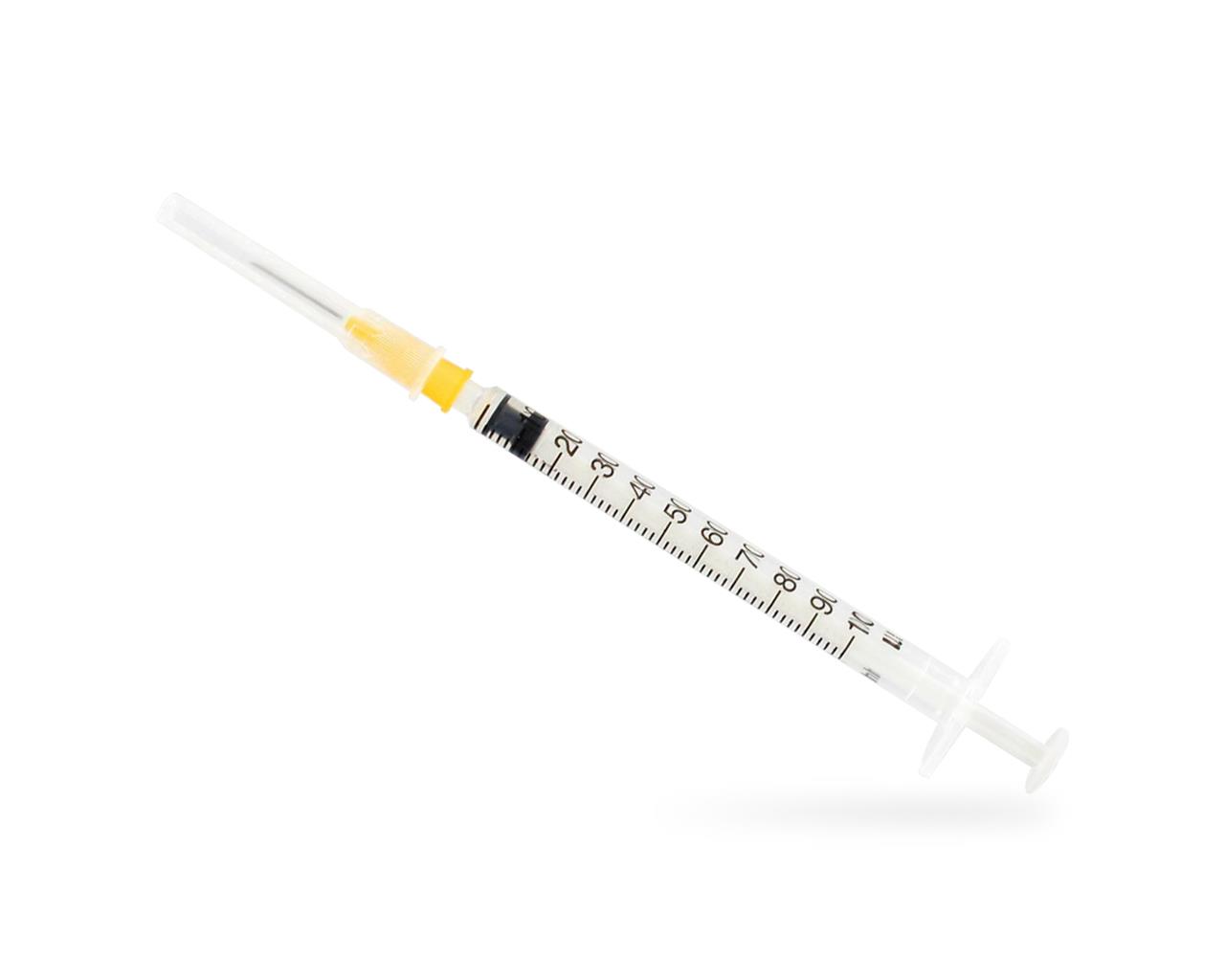Siringhe BD Plastipak™ da 1 ml con scala graduata 100 U.I., con ago montato.