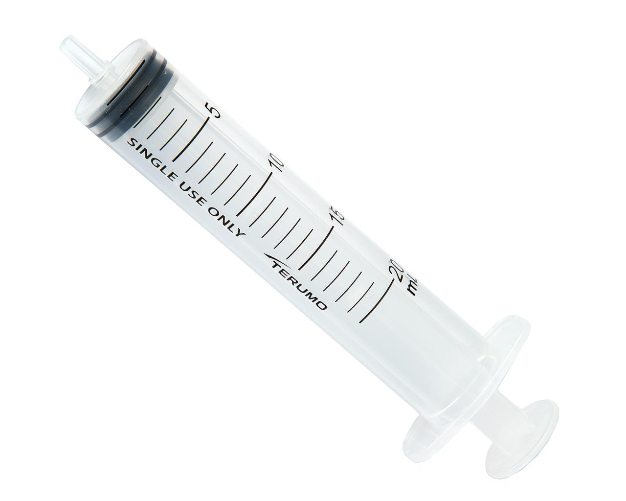 Siringhe monouso sterili 3 pezzi Terumo, senza ago. Le siringhe sono destinate all'iniezione, aspirazione o campionamento di fluidi corporei o del sangue.