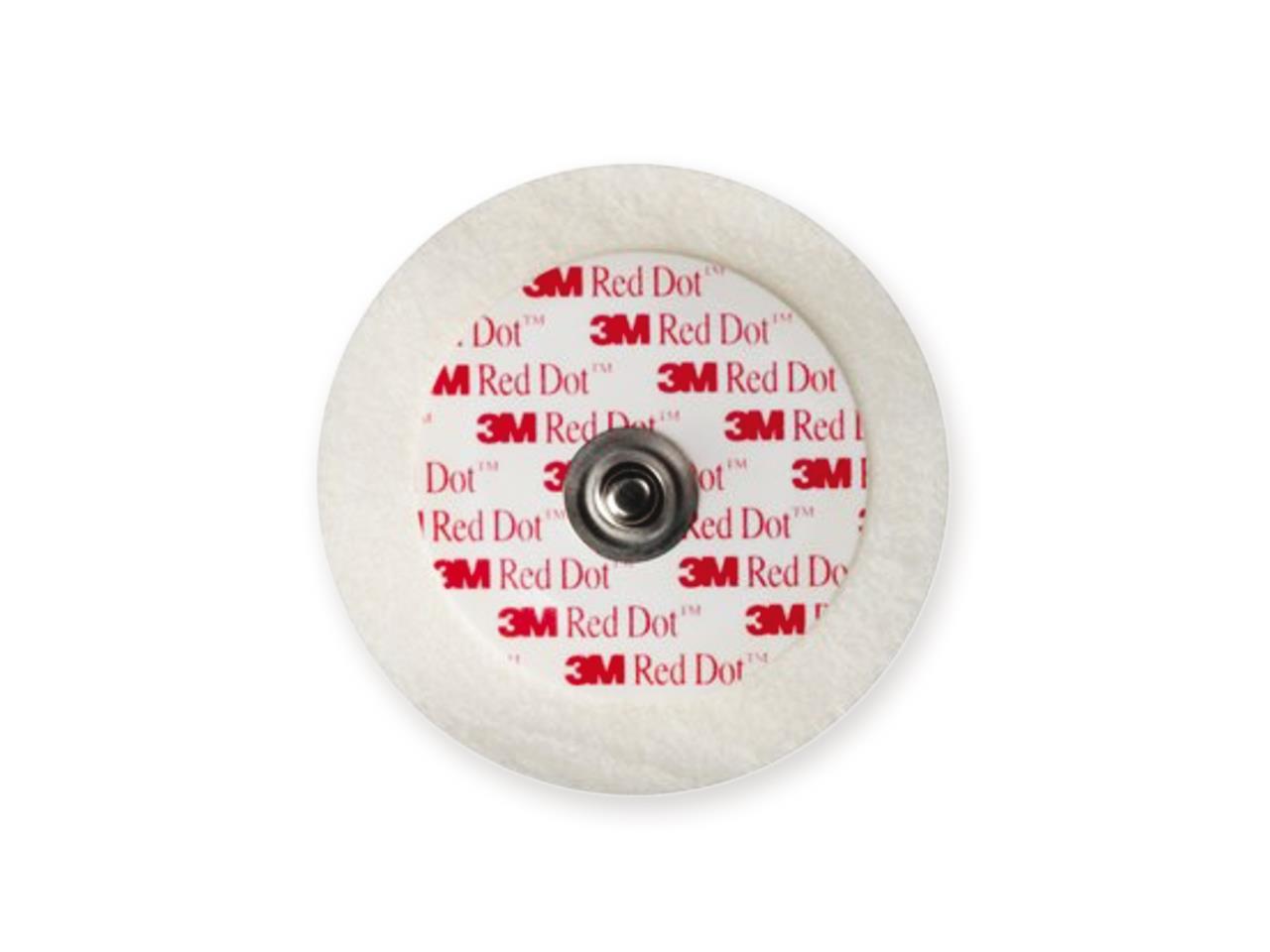 Elettrodo monouso per ECG, con bottone centrato, in TNT e gel solido 3M RED DOT™ adatto per il monitoraggio cardiaco del paziente pediatrico di breve e lunga durata, fino a 3 giorni dall’applicazione.