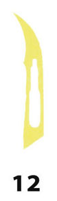 Lame monouso sterili n.12 in fibra di carbonio Lame in fibra di carbonio prodotte secondo i requisiti BRITISH STANDARDS BS 2982, 5194 ed ISO 7740. Ogni lama è confezionata singolarmente in foglie di alluminio ed in scatole da 100 pz.