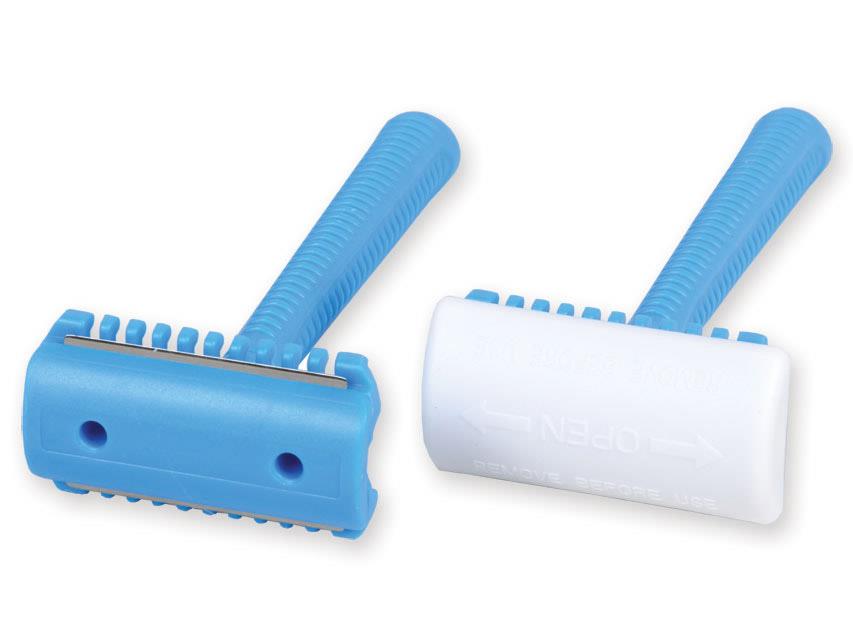 Rasoi chirurgici monouso per tricotomia, non sterili, con lama singola con pettine, in acciaio inox.