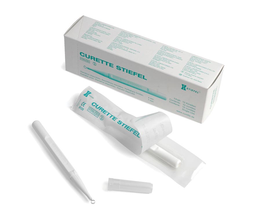 Curette dermatologiche pronte all'uso, sterili, imbuste singolarmente. La lama è realizzata in acciaio estremamente affilato per tessuti morbidi; mentre il manico ergonomico offre un'ottima presa.