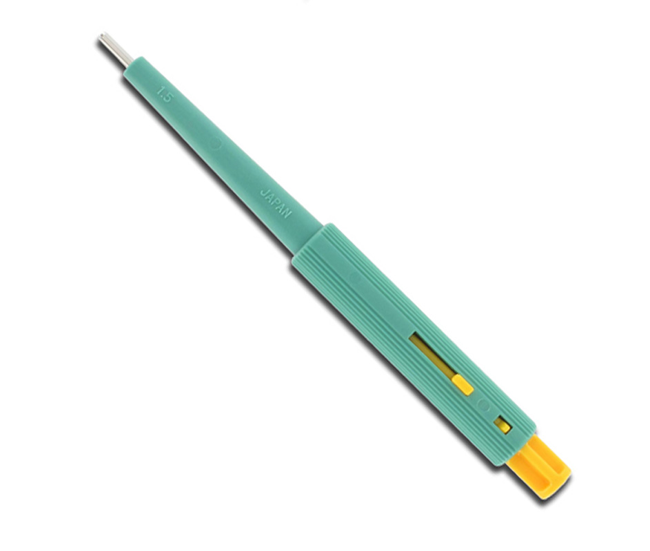 Punch per biopsia con otturatore senza latex, monouso sterili, dotate di lama in acciaio inossidabile, molto affilata, e di manico in plastica. Sul punch è marcata la misura per una più facile identificazione.