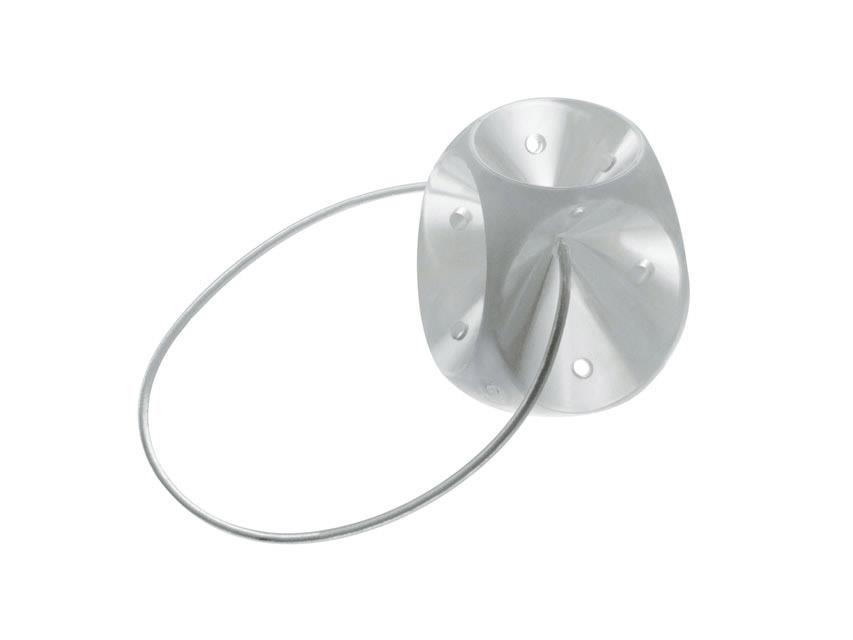 Pessario in silicone, autoclavabile, senza lattice con forma piramidale e fori drenanti. Fornito con cordino rinforzato in kevlar.
