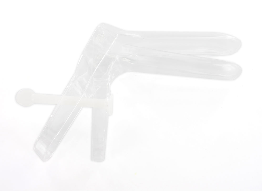 Speculum vaginali monouso sterili con perno centrale.