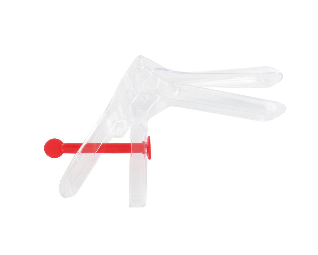 Speculum vaginale monouso a perno, con regolazione centrale. Da utilizzare per la dilatazione vaginale con esposizione del collo dell'utero. Il sistema a perno centrale permette di regolare e bloccare con sicurezza l'apertura del canale vaginale.
