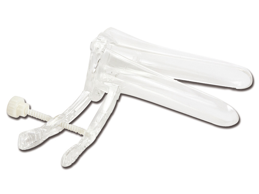 Speculum vaginali monouso sterili con vite centrale.