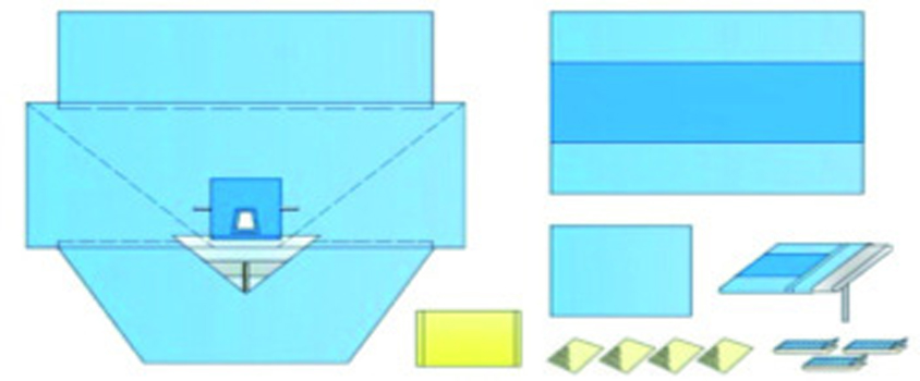 • 1 drappo ginecologico per posizione litotomica 290×240 cm con foro adesivo, leggings integrato, sacca per la raccolta del liquido con filtro e valvola di scarico