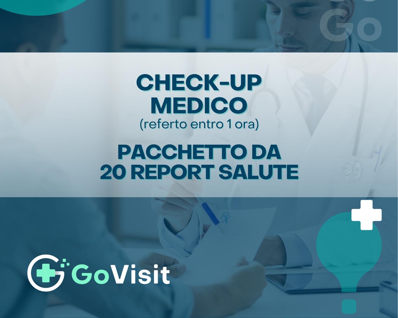 Il servizio di GoVisit “Check-Up Salute” offre un'analisi completa e dettagliata sullo stato di salute del paziente, con l’obiettivo di monitorare e prevenire eventuali problematiche, ricevendo un report entro un'ora dall'invio delle rilevazioni.