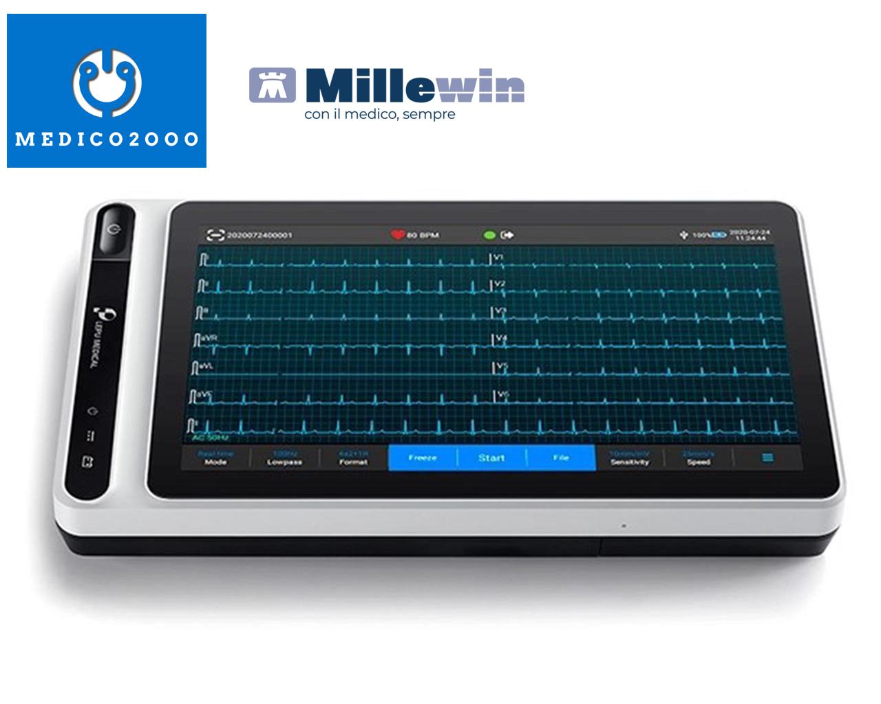 Permette la memorizzazione, visualizzazione in anteprima, revisione, modifica e il caricamento dei dati del paziente mediante trasmissione wireless dei dati ECG attraverso reti mobili e WiFi, inoltre i dati del paziente sono esportabili anche su chiavetta esterna tramite connessione USB.