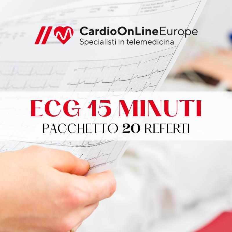 Il pacchetto Ricarica Referti ECG 20 di Cardio On Line Europe permette di usufruire di 20 referti ECG, da utilizzare senza scadenza, con refertazione entro 15 minuti dall'invio del tracciato.