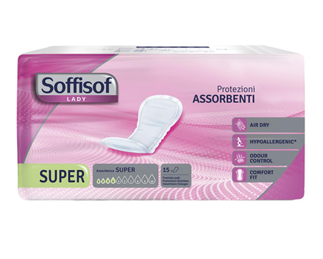 La protezione assorbente Soffisof Air Dry Lady Super è indicata per una moderata incontinenza urinaria femminile.