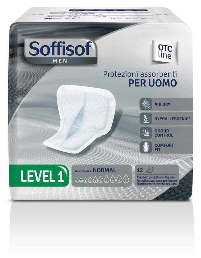 La protezione assorbente Soffisof Air Dry Men Level 1 è indicata per una leggera incontinenza urinaria maschile.