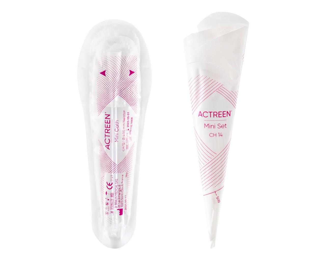 Actreen® Mini di B. Braun è un catetere femminile per cateterismo intermittente prelubrificato e pronto all’uso.