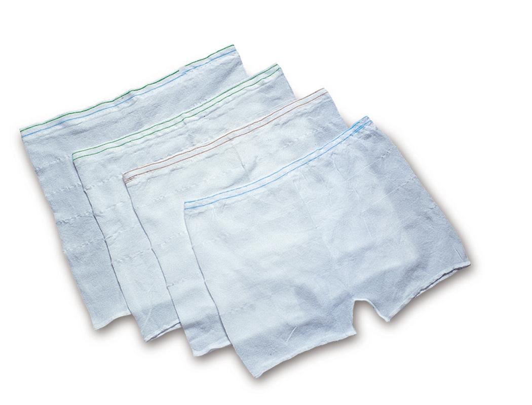 Mutandina elastica per il fissaggio al corpo e il contenimento dei pannoloni sagomati e rettangolari. Realizzata in morbido tessuto elasticizzato di poliammide, poliestere ed elastomero con sgambatura sulla coscia, senza cuciture (seamless).