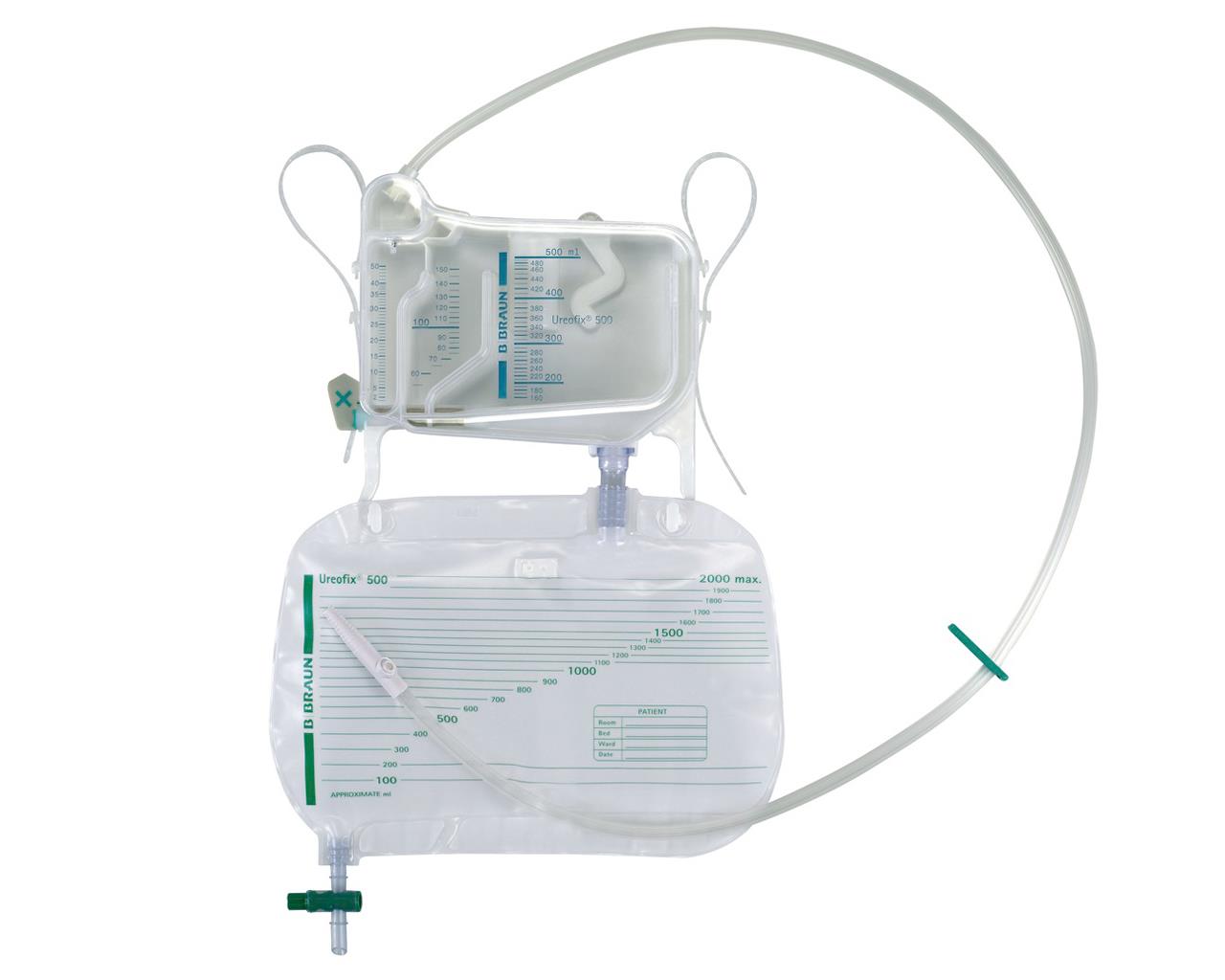 Ureofix® 500 Classic di B. Braun è un sistema chiuso per la misurazione della diuresi oraria con sacca chiusa da 2 litri con rubinetto.