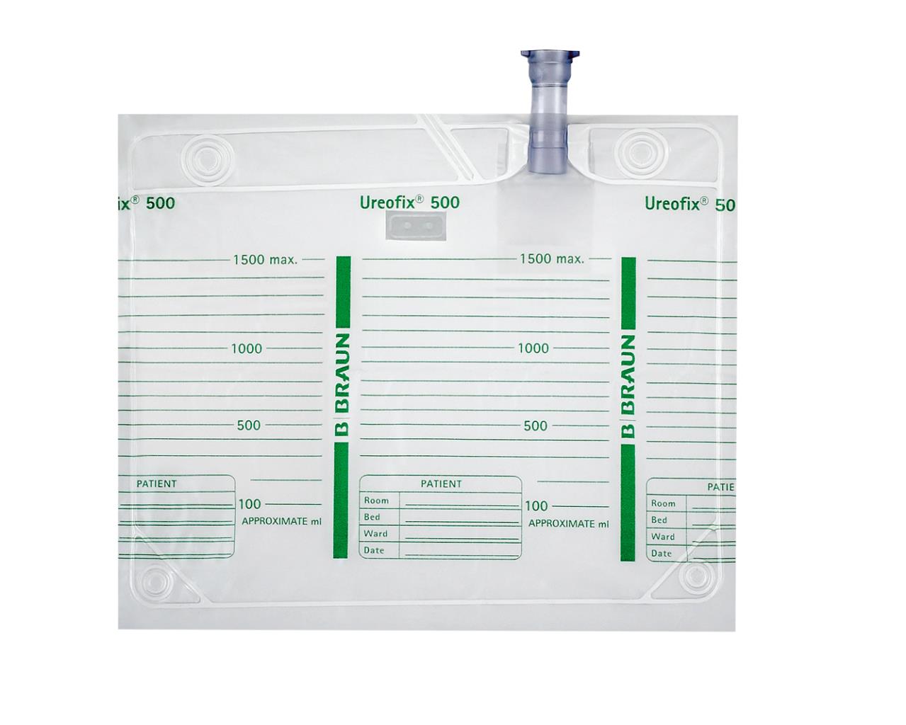 Tutte le sacche Ureofix® 500 Classic sono doppiamente rinforzate sui bordi e hanno uno spazio pe-stampato per i dati identificativi del paziente.