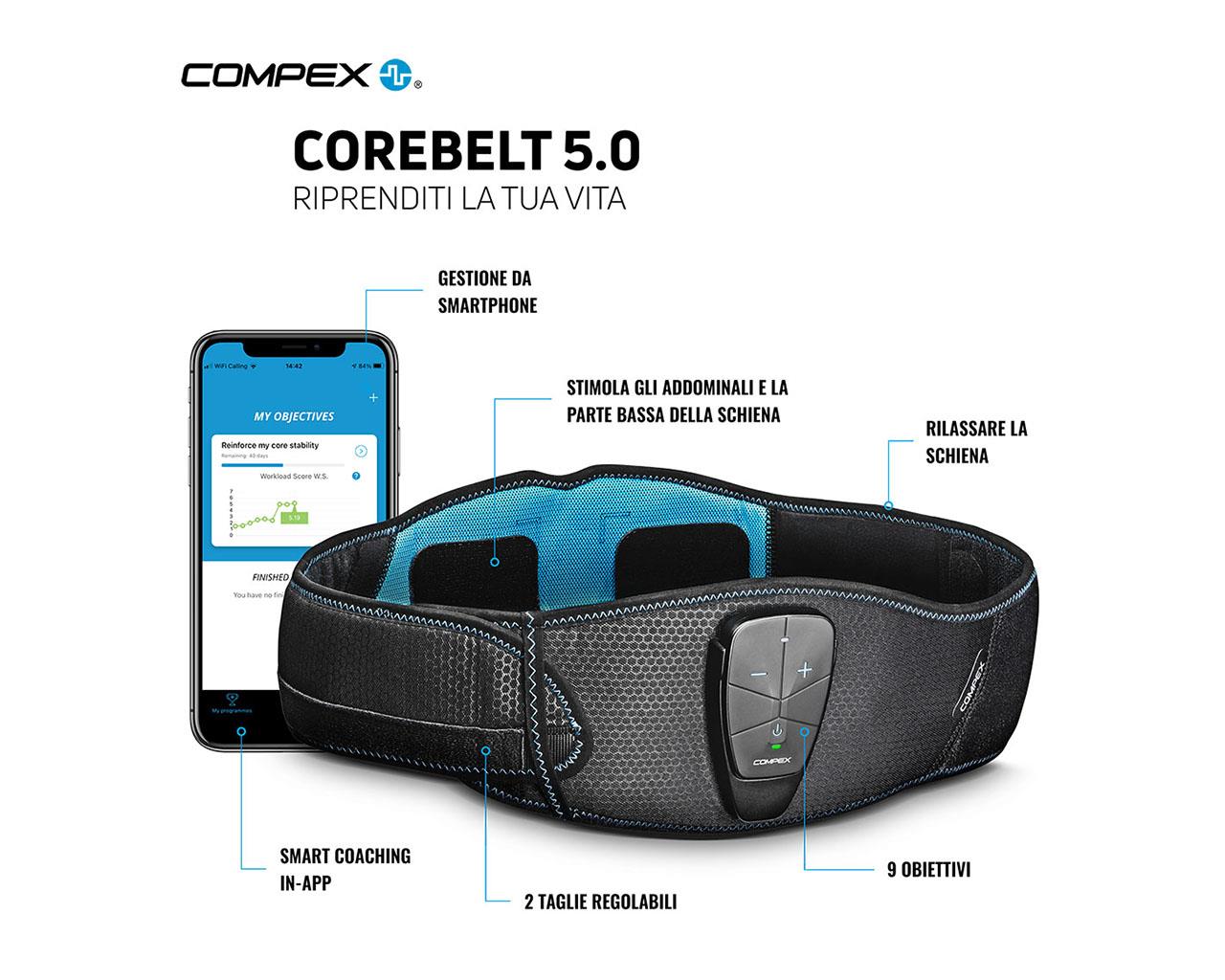 Corebelt 5.0 è la prima cintura per allenare, tonificare e rafforzare il “Core” che include anche programmi di massaggio alla schiena per rilassare e sciogliere i muscoli, rilasciando la tensione causata da stress, affaticamento e postura scorretta.