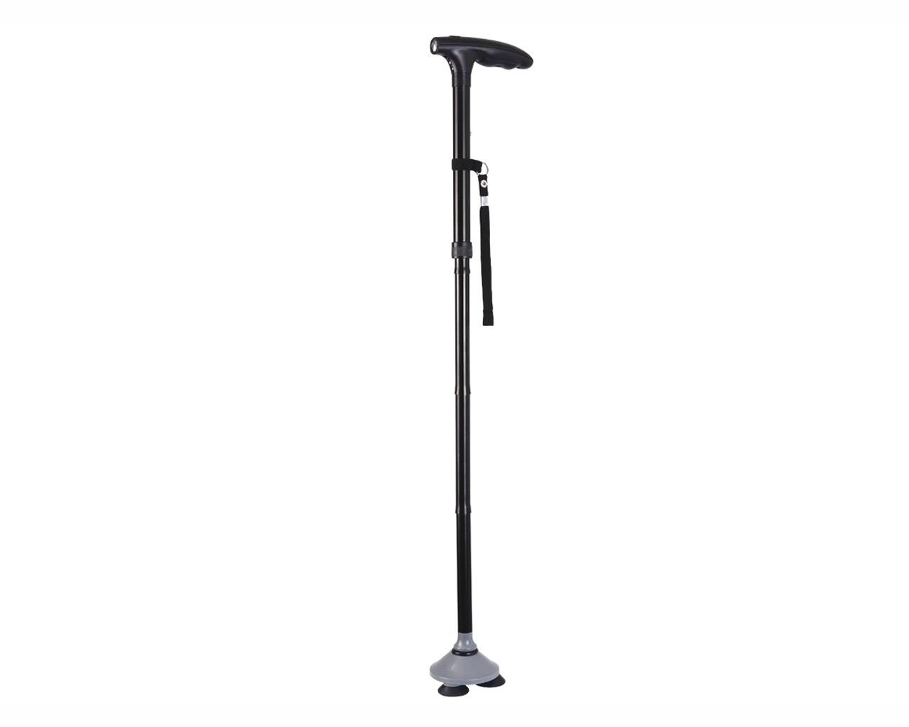 Resistente, pieghevole, con luce integrata, testa pivottante e 3 piedini antiscivolo alla base.