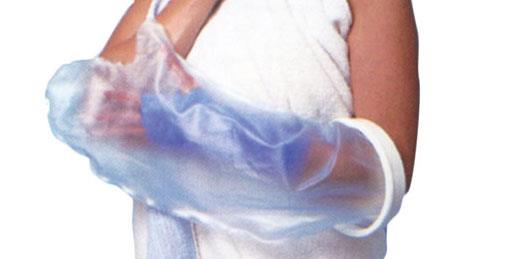 Protezione per gessi e bendaggi in materiale plastico (vinile) flessibile, latex free, con anello e dispositivo “anti-acqua”. Si adatta a qualsiasi tipo di bendaggio o gesso.