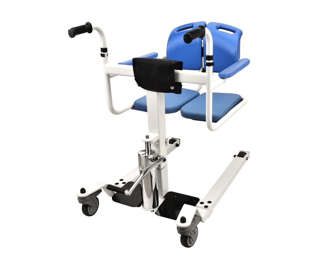 Sedia idraulica in acciaio ideale per trasferire il paziente dal letto alla toilette, alla doccia o altrove.