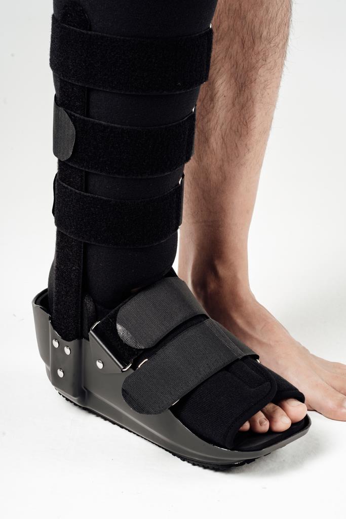 Stivale ortopedico alto, non articolato alla tibio-tarsica, prodotto con materiali di alta qualità leggeri, traspiranti, confortevoli e resistenti all’usura anche per un impiego prolungato nel tempo. La sezione del piede è realizzata in ABS monoblocco, resistente e sicura, dal design ergonomico, con suola antiscivolo e antigraffio al pavimento. Le fasce a strappo di chiusura a doppio uncino aumentano la resistenza e la tenuta in fase di deambulazione. La sezione interna di appoggio del piede è larga e squadrata per accogliere eventuali medicazioni, mentre le aste laterali sono in alluminio anodizzato malleabili.