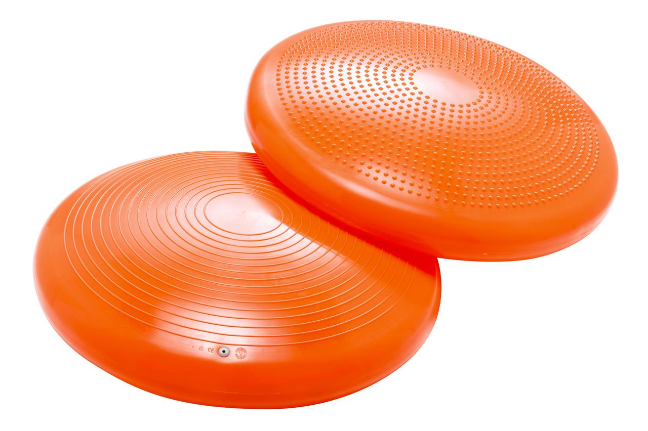 Coppia di dischi gonfiabili ideali per ogni esercizio di equilibrio, motricità e fisioterapia. Un lato presenta delle piccole punte e l'altro lato è antisdrucciolo.