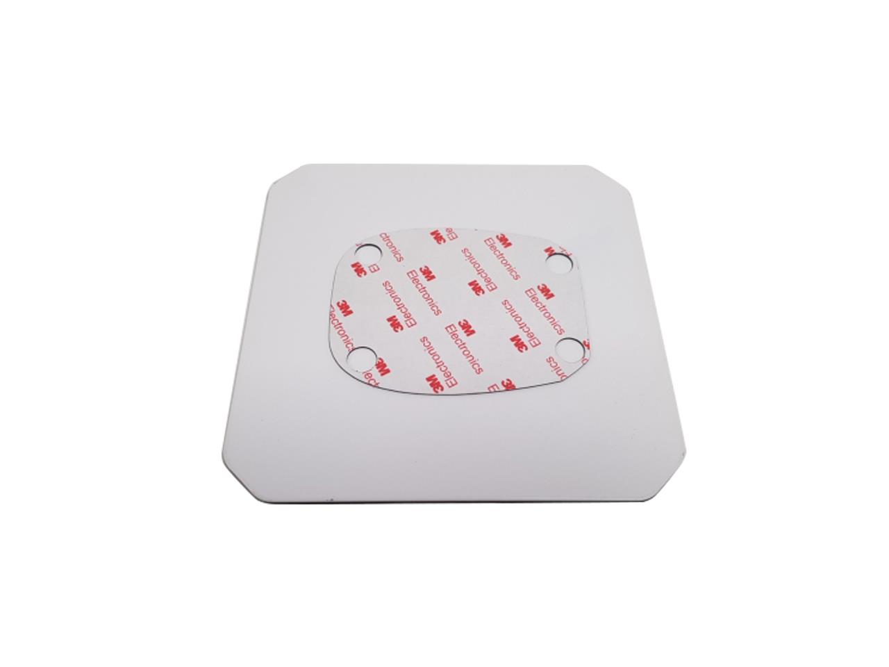 Piastra in metallo verniciata a polvere e autoadesiva, magnetica, da applicare sulla base del portapillole elettrico Severo per stabilizzarlo sui carrelli portafarmaci.